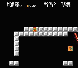 これは余談ですが、スター状態で斧を取ると、マリオのグラフィックがスター状態のまま点滅終了し、クリアになります。 |