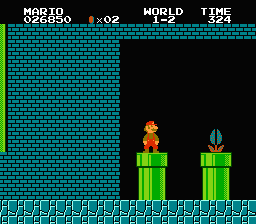 | #06その他 | −1面へ | ![]() オリジナルマリオ1−2で、マリオを右寄りにした状態でワープゾーンへ行くと、テキストが表示されずパックンフラワーが出現したままの状態になります。 この時、中央の土管は5−1へ、左右の土管は○−1面へ繋がっています。 |